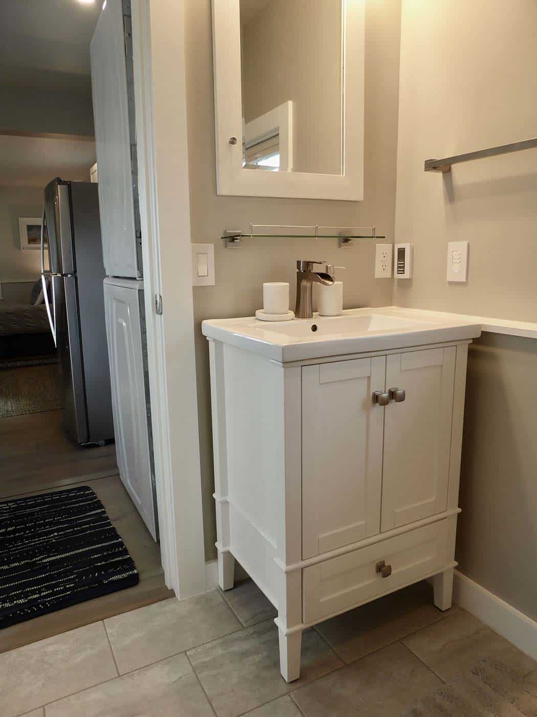 The studio is fully furnished with kitchen and bath towels, and linens, blankets and comforters for the queen and twin beds.